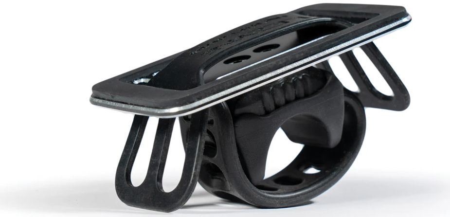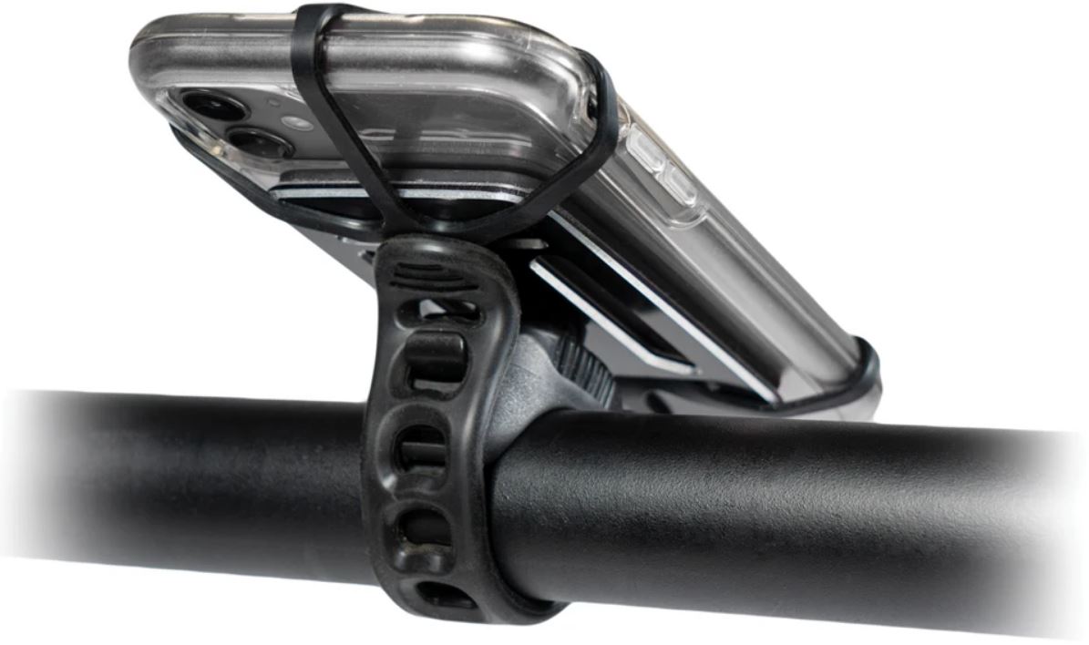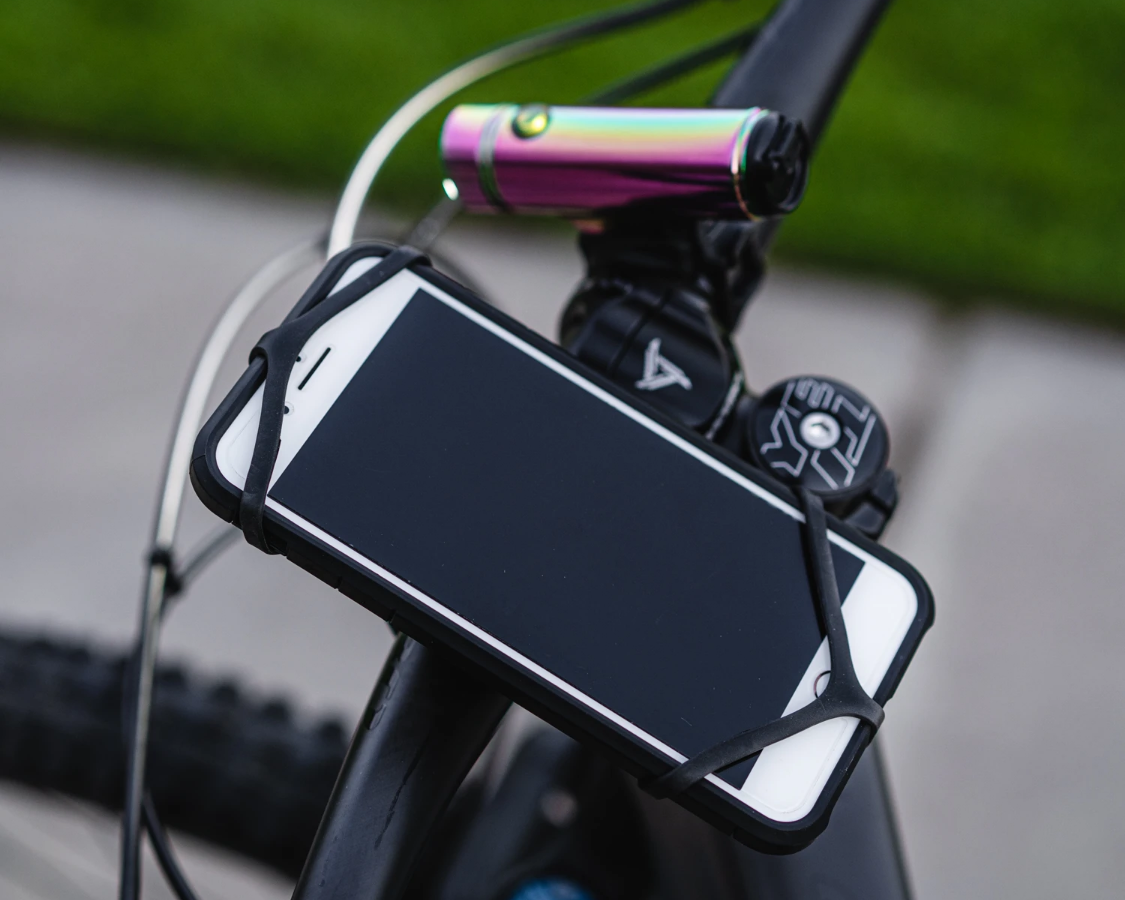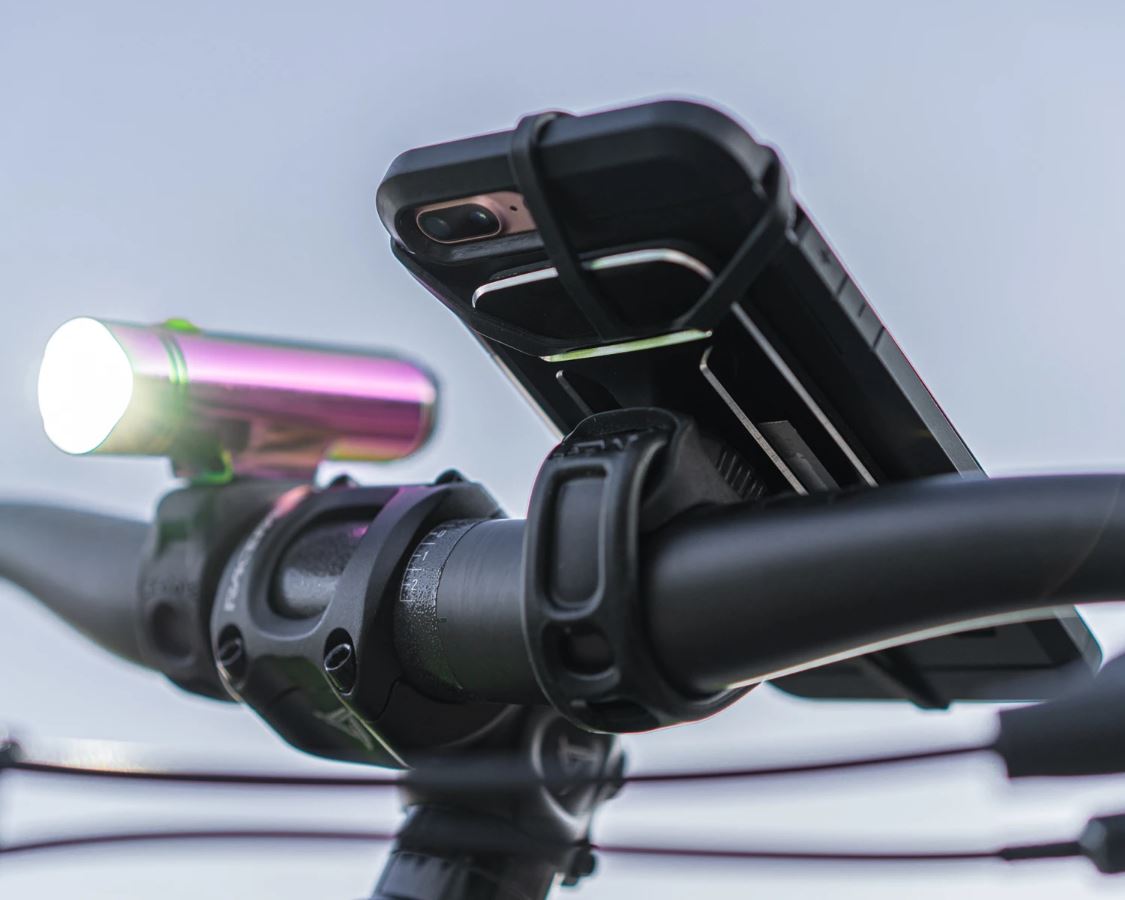 The Smart Grip Mount is a sturdy phone holder that can be mounted on any bicycle. The frame is made of machined aluminum surrounded by a soft layer of non-slip material.